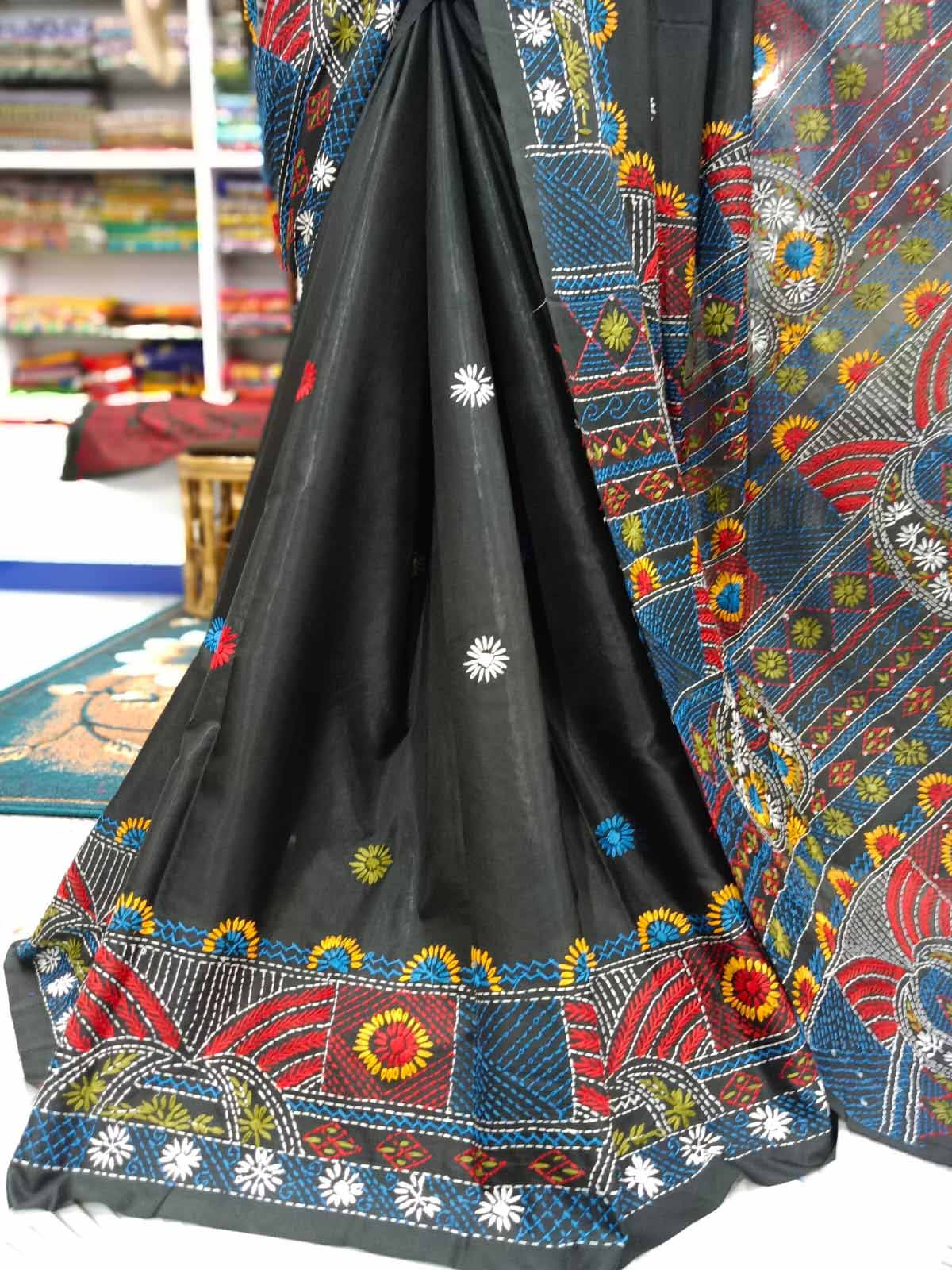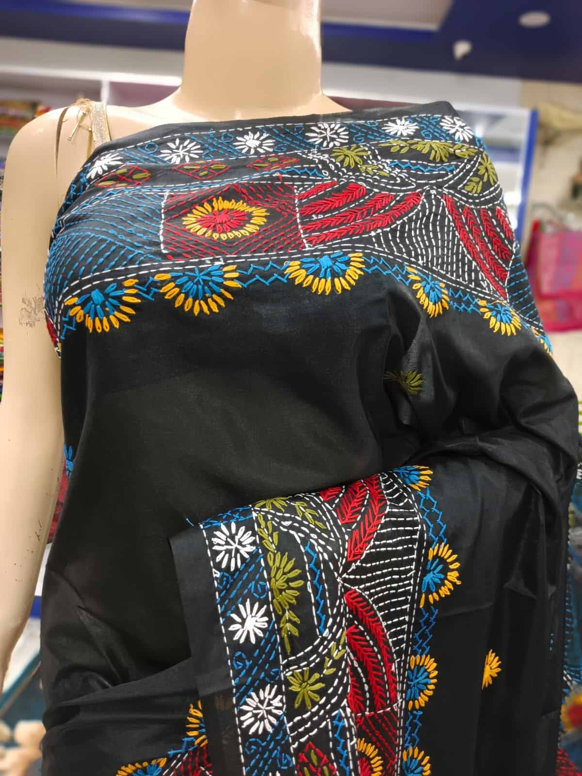 Exquisite Kantha Stitch on Bangalore Silk Saree