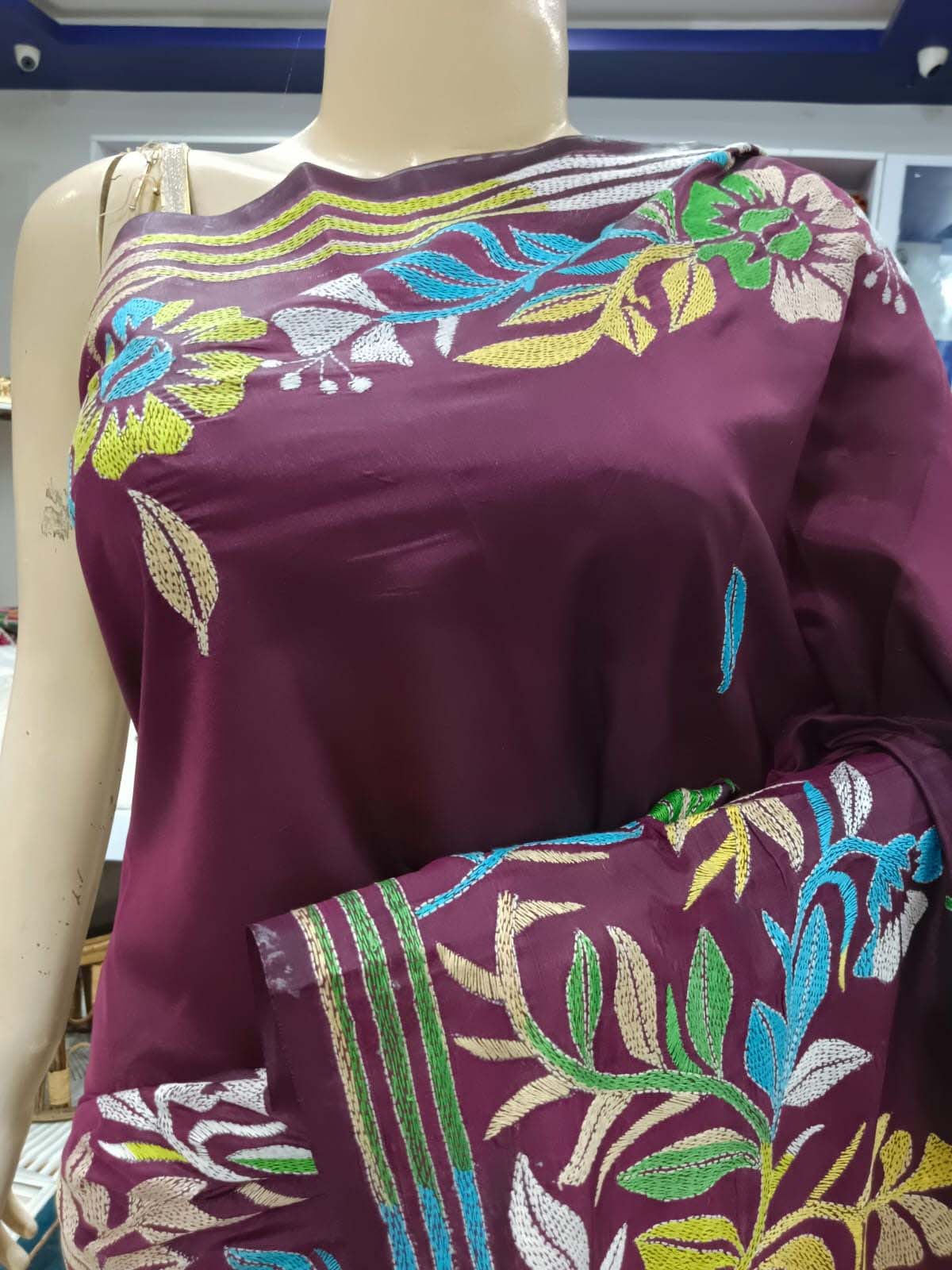 Exquisite Kantha Stitch on Bangalore Silk Saree