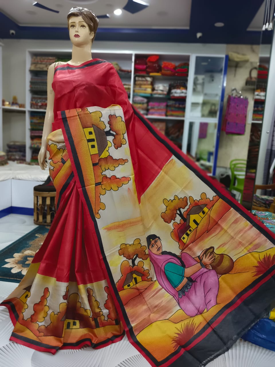 Handprint Katha Street saree on pure Tussar silk with silk mark tag.
